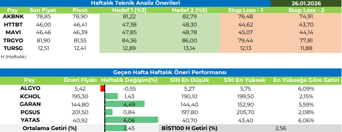 Haftalık Teknik Analiz Önerileri