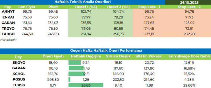Haftalık Hisse Önerileri / İnfo Yatırım – (27-31 Ekim 2025)