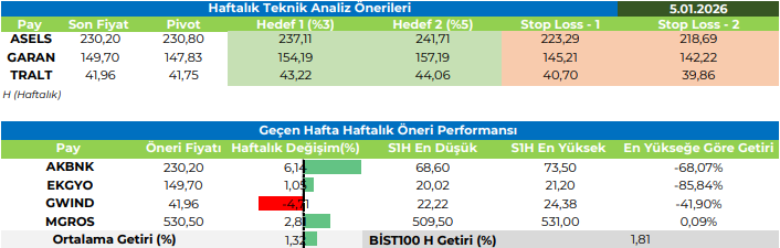 Haftalık Teknik Analiz Önerileri