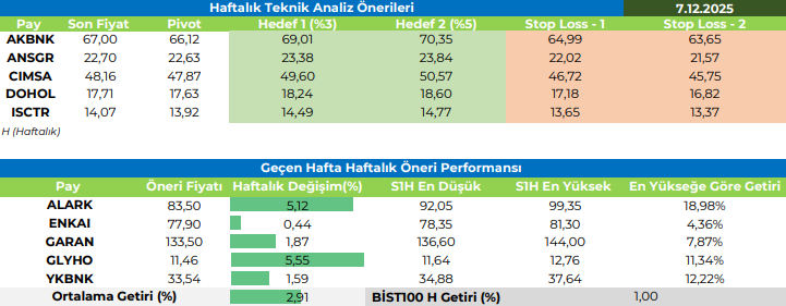 Haftalık Teknik Analiz Önerileri