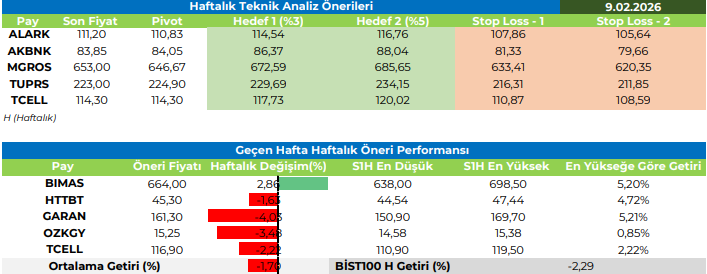 Haftalık Teknik Analiz Önerileri