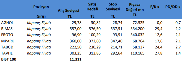 Teknik olarak, 11200 seviyesi üzerinde kalınmakta kararlı olunması halinde 11500 seviyesine doğru yükseliş eğilimi sürebilir. Buna karşın piyasa 10800 seviyesinin altında kapatmak istemiyor. Dolayısıyla geri çekilmelerin sınırlı olmasını ve yükseliş eğiliminin belirli bir bant için kalmasını bekleriz. Teknik göstergeler pozitif bölgede olmaya devam ederken, 11200 üzerindeki seyirlerin korunması halinde 11500’e doğru tepkili eğilimin sürmesi beklenebilir.