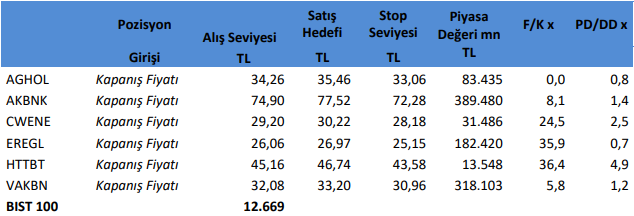 Takibimizdeki hisseler tamamen teknik analize göre belirlenmektedir. İşlem hacmi ve likiditesi yüksek 100 Endeks hisselerinden olmasına öncelik verilmektedir. Pozisyona giriş fiyatları Cuma günü kapanış seansında oluşan fiyatlardan yapılmaktadır. Hedefine ulaşmayan pozisyonlar stop loss seviyesinin altına inmediyse, bir sonraki Cuma günü kapanış fiyatından kapatılmaktadır. Belirlenen stop loss seviyeleri referans stop noktasıdır. Bu stop loss seviyesinin altında bir kapanış olması halinde referans değer gün sonu kapanış olarak alınacaktır.