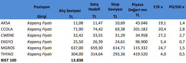 Teknik olarak Borsa endeksi kısa vadeli desteği olan 13690 seviyesi üzerinde kalıp kalmayacağı önemli olacak. Endeksin 13690 seviyesi altına sarkması halinde 13370 seviyesine doğru baskı devam edebilir. Teknik yükseliş çok hızlı olduğu düşünüldüğünde baskı da hızlanabilir. Buna karşın 13870 seviyesi üzerinde hızlanması halinde takip edeceğimiz destek seviyelerini yukarı çekmemiz gerekebilir. Endekste olası bir sert geri çekilme sonrası güçlü desteklerden güç alıp yoluna devam edebileceğini bekliyoruz.