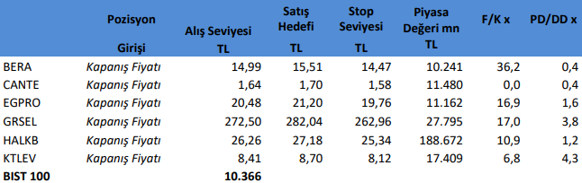 Teknik göstergeler güçlü eğilimini sürdürüyor. Kısa vadede 10.400 seviyesi üzerindeki gün sonu kapanışlarda 10.800 seviyesine doğru yükseliş potansiyeli izlenebilir. 10.400 çok güçlü bir direnç. Bu seviyenin aşılmakta zorlanılması halinde ise satış baskısı yeniden 10.000 seviyesine doğru sürebilir. 10.000 – 10.400 seviyesinde oluşan yatay kanal bant oldukça iyi çalışıyor. Yukarı yönde kırılması halinde yeni bir zirve denemesine doğru gidebiliriz. Yatay bandın aşağı yönde kırılması halinde ise 9800 seviyesine doğru geri çekilme potansiyeli artabilir.