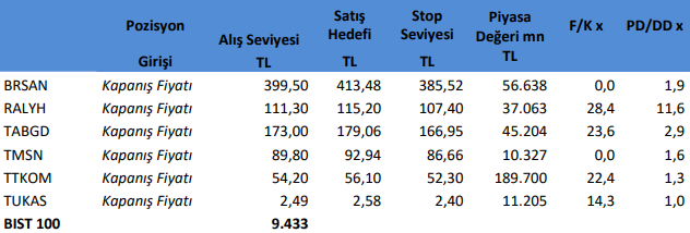 Teknik olarak, haftalık endeks grafiğinde teknik göstergeler cılız da olsa yukarı tepkiyi destekler nitelikte. Ancak kısa vadede 9600 ve onun üzerinde 9900 seviyesi aşılmadıkça yükselişler tepki olarak kalabilir. Endekste 9300 seviyesinden gelen tepkilerin çalıştığını izledik. Geri çekilme olması halinde 9300 seviyesi üzerinde satışlar karşılandıkça satış baskısının sınırlı olması beklenebilir.