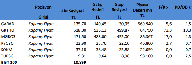 Takibimizdeki hisseler tamamen teknik analize göre belirlenmektedir. İşlem hacmi ve likiditesi yüksek 100 Endeks hisselerinden olmasına öncelik verilmektedir. Pozisyona giriş fiyatları Cuma günü kapanış seansında oluşan fiyatlardan yapılmaktadır. Hedefine ulaşmayan pozisyonlar stop loss seviyesinin altına inmediyse, bir sonraki Cuma günü kapanış fiyatından kapatılmaktadır. Belirlenen stop loss seviyeleri referans stop noktasıdır. Bu stop loss seviyesinin altında bir kapanış olması halinde referans değer gün sonu kapanış olarak alınacaktır.