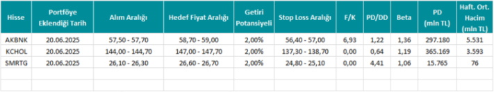 *Tablo yer alan fiyat sütunu verileri ile diğer veriler hisselerin portföye eklendiği tarihten önceki son işlem günü kapanış verileri üzerinden hesaplanmıştır.