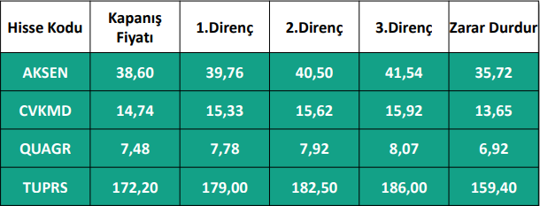 1) Haftalık Hisse Takip Listesinde yer alan hisse senetleri, Hedef Fiyat Aralığı ve Stop-Loss seviyeleri teknik analiz kriterlerine göre seçilmiştir. Liste içerisinden bireysel hisse senedi seçimi yapılması beklentilerinize uygun sonuçlar doğurmayabilir.