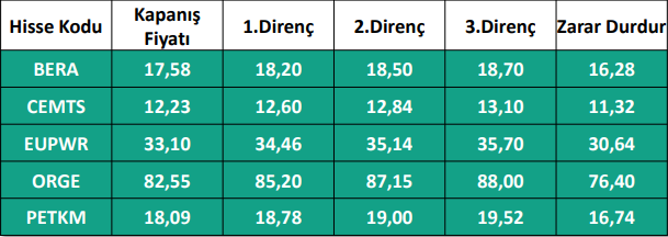 1) Haftalık Hisse Takip Listesinde yer alan hisse senetleri, Hedef Fiyat Aralığı ve Stop-Loss seviyeleri teknik analiz kriterlerine göre seçilmiştir. Liste içerisinden bireysel hisse senedi seçimi yapılması beklentilerinize uygun sonuçlar doğurmayabilir.