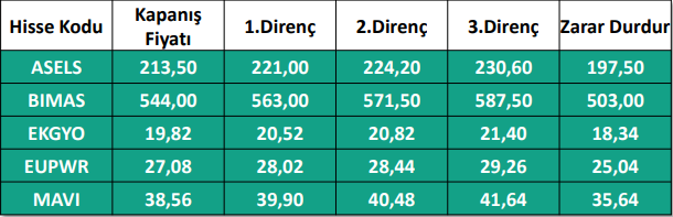 1) Haftalık Hisse Takip Listesinde yer alan hisse senetleri, Hedef Fiyat Aralığı ve Stop-Loss seviyeleri teknik analiz kriterlerine göre seçilmiştir. Liste içerisinden bireysel hisse senedi seçimi yapılması beklentilerinize uygun sonuçlar doğurmayabilir.