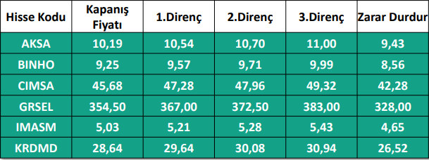1) Haftalık Hisse Takip Listesinde yer alan hisse senetleri, Hedef Fiyat Aralığı ve Stop-Loss seviyeleri teknik analiz kriterlerine göre seçilmiştir. Liste içerisinden bireysel hisse senedi seçimi yapılması beklentilerinize uygun sonuçlar doğurmayabilir.