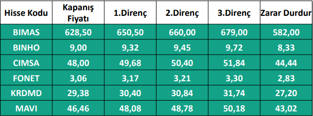 1) Haftalık Hisse Takip Listesinde yer alan hisse senetleri, Hedef Fiyat Aralığı ve Stop-Loss seviyeleri teknik analiz kriterlerine göre seçilmiştir. Liste içerisinden bireysel hisse senedi seçimi yapılması beklentilerinize uygun sonuçlar doğurmayabilir.