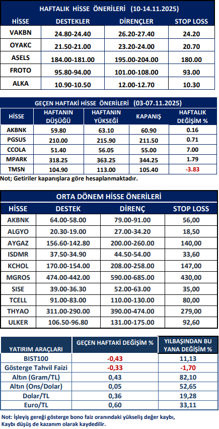 Haftalık Hisse Önerileri