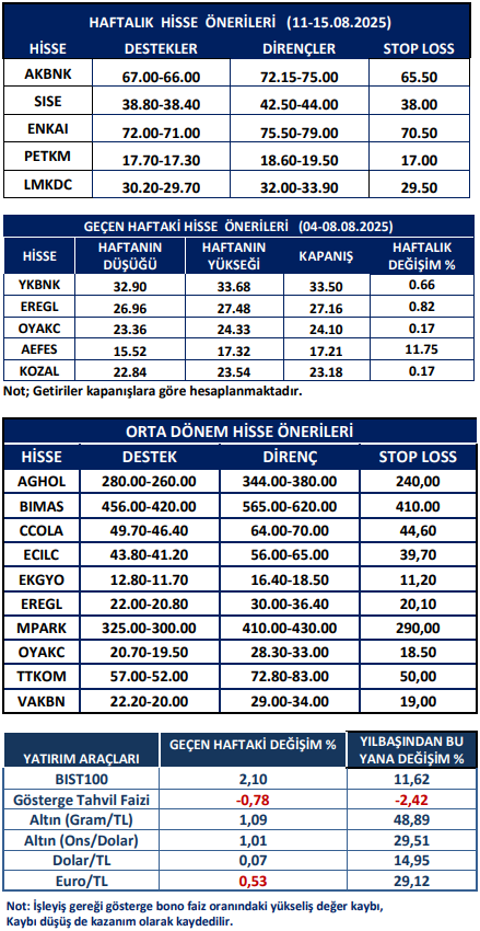 Piyasalarda iyimserlik devam ediyor. Temmuz enflasyonunun beklentilerin altında kalması olumlu havayı daha da güçlendirdi. Hatırlanacağı üzere 24 Temmuz toplantısında TCMB faiz indirim sürecini başlatmıştı. Son enflasyon datasıyla Eylül toplantısı için faiz indirimi kuvvetli bir olasılık olarak fiyatlanmaya başlandı. Bilindiği üzere borsanın en ciddi rakibi faizdir. TCMB faiz indirimiyle birlikte bankalar da mevduat faizlerini düşürdüler. Mevcut faiz artan stopaja rağmen halen enflasyona göre bir miktar reel getiri imkanı sunuyor. Ancak faiz düşmeye devam ederse bu marj daha da daralacak veya bir süre sonra ortadan kalkması olasılığı belirecek. Borsalarda “fiyat önden gider” anlayışına bu noktada atıfta bulunmak gerekir. Mevcut fiyatlama algısı piyasa bozucu bir haber akışı olmadığı taktirde geçerli olabilecek. İç ve dış gündemin hızla değiştiği bir süreçten geçiyoruz. Olumlu havayı destekleyen diğer gelişmeler ise dış piyasalardaki iyimserliğin sürüyor olması ve 06/2025 şirket bilançoları. Enflasyon muhasebesi ve yavaşlayan ekonomiye bağlı olarak yılın ilk yarısına ait bilançolarla ilgili beklentiler oldukça zayıf tutulmuştu. 03/2025 ve 12/2024 bilançoları da iyi gelmemişti. Ancak açıklanan 06/2025 bilançoları genel olarak beklentilerden daha iyi bulundu. Özellikle THYAO gibi bazı lokomotif hisselerin bilançoları piyasanın genelini olumlu etkiledi. Faiz düşüşü devam ettikçe ekonomik aktivitede canlanma da beklenebilir. Bu durumun mikro düzeyde şirket bilançolarına önümüzdeki dönemlerde yansıma göstermesi muhtemeldir. Sayılan gelişmeler belli ölçüde Borsa İstanbul’daki fiyatlamalara dahil oldu. BIST100 Endeksi Temmuz/2024 tarihi zirvesi olan 11.250 seviyesine oldukça yaklaştı. Bu açıdan BIST100 Endeksi’nde “yorgunluk” emarelerine bağlı satış denemeleri görülmesi olağan bir durum. Hesaplar şimdi, zirve geçilecek mi yoksa, satış görüp teknik düzeltme sonrası mı geçilecek veya 11.250 zirve olarak kalacak oradan satışlar mı gelecek üzerine yapılıyor. Bu aşamada, satışlar görülse de çıkış hareketinin gücünü koruduğu şeklinde bir görünüm hakim. BIST100 Endeksi’ne dolar bazında bakıldığında ise Temmuz/2024 zirvesinin %20 gerisinde bulunuyor. Dolar bazında mevcut dolar/TL kuru ile bu zirveyi yakalamak için BIST100 Endeksi’nin 13.900-14.000 olması gerekecek. Dolar/TL kurunun yüksek faiz nedeniyle baskı altında kaldığı ve enflasyon ile uyumsuzluğu da bilinen bir durum. Faiz düşüşünün devamı olasılığı piyasalar için havuç işlevi görecek beklenti ihtiyacı karşılanmış durumda. İç ve dış piyasalarda olumsuz bir gündem belirmez ise mevcut görünüm bir süre daha korunabilir. Ancak BIST100 Endeksi’nde iki ayda %20’yi aşan bir prim oluştu. Bu direnç noktalarında satış denemelerine karşı duyarlı olmayı gerektiren bir durum.