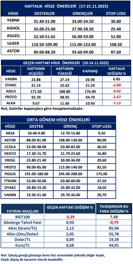 Haftalık Hisse Önerileri
