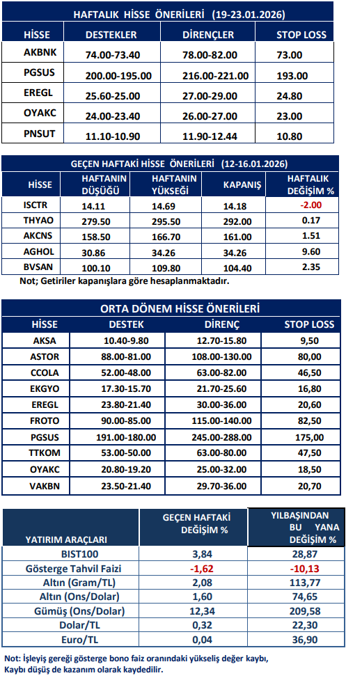 Haftalık Hisse Önerileri
