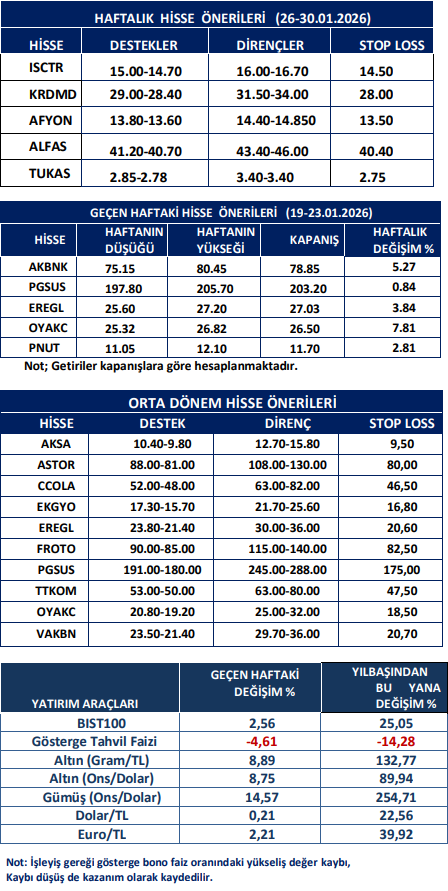 Piyasalarda iyimserlik sürüyor. Altın, gümüş, döviz kurları ve borsalarda çıkış trendleri hakim. Altın ve gümüş başta olmak üzere kıymetli metaller ile Borsa İstanbul’da rekor denemeleriyle ralli devam ediyor. Birbirine alternatif olan yatırım araçlarının eş zamanlı yükselmeleri dikkat çekici. Güvenli limanlara ilgi artarken risk iştahı da artıyor. Her yatırım aracının çıkış için kendine göre haklı gerekçeleri var. Faizler düşerken borsalar ile altın fiyatlarındaki yükseliş anlamlı. Ancak altında son günlerdeki çıkış daha çok jeopolitik risklerden beslenir hale geldi. Geçmişte de rastlanıldığı üzere bazı dönemler bu tür uyumsuzluklar olabiliyor. Daha sonra piyasalar olağan işleyişine dönüyor. “Herkesin kazandığı bir sistem” ne kadar sürdürülebilir bunu izleyip göreceğiz. Geçen hafta iç gündem TCMB ağırlıklıydı. 100 baz puanlık faiz indirimi geldi. Beklentiler 150 baz puandı. Daha önce TCMB Başkanı Fatih Karahan “Enflasyon önümüzdeki iki ay içinde dalgalanma gösterebilir” açıklamasıyla bunun sinyalini vermişti. Toplantı metninde ise, “öncü veriler ocak ayında aylık tüketici enflasyonunun gıda öncülüğünde arttığı ve dezenflasyon süreci açısından risk unsuru olmaya devam ettiği” şeklindeki açıklama ise neden beklentilerden daha düşük bir faiz indirimi yapıldığının izahı gibi. Enflasyonda geçici süreli bir dalgalanma beklentisi TCMB’yi daha temkinli yapmış. Bir sonraki TCMB toplantısı 12 Mart’ta yapılacak. Bu açıdan piyasalarda faizle ilgili fiyatlamaların dozu bir süre sonra düşebilir. Yönetilen ve yönlendirilen fiyatların etkisiyle ocak ayına ait enflasyon zaten yüksek bekleniyordu. Piyasa bunu kabullenmişti. Ancak TCMB kaynaklı açıklamalar sonrası ocak enflasyon beklentileri bir parça daha yükselmiş oldu. Bununla birlikte yıl genelinde dezenflasyon sürecinin devamına ilişkin beklentiler değişmiş değil. Borsa İstanbul’da TCMB faiz kararı sonrası faize en duyarlı sektör olan bankacılık hisselerine gelen satışların alımlarla karşılanıp yükselişini sürdürmesinin altında da büyük ölçüde bu beklenti var. BIST100 Endeksi yeni zirveler deneyerek çıkışını sürdürmesine karşılık yükseklik korkusu henüz gözlenmiyor. Borsanın uzun süredir baskı altında kalması, dolar ve enflasyon bazlı grafiklerde halen zirvelerinin gerisinde kalınması bu açıdan önemli. Borsada yabancı alımları sürüyor. Dış piyasalarda gelişen ülke piyasalarına girişlerin devam ettiği yönünde bir süredir haber akışları mevcut. Artan işlem hacmi yerli yatırımcıların da hisselere ilgisinin arttığını gösteriyor. Siyasi ve jeopolitik bir olumsuzluk olmadığı taktirde faiz düşüşüyle birlikte borsaya ilginin sürmesi beklenebilir. Son aylarda yerli yatırımcının ilgisi altın ve gümüşe yönelmiş durumda. İleriki bir zaman diliminde altın ve gümüşte olası bir kâr realizasyonu borsaya yönelimi destekleyecek bir zemin oluşturabilir. Önümüzdeki günlerden itibaren 12/2025 dönem bilançoları gelmeye başlayacak. Beklentiler önceki dönemlere göre daha iyi. Hisse seçimleri her zaman önemlidir. İyi bilançolar kadar “büyük para haklıdır” anlayışından hareketle talebi artan hisseleri ayrıca takibe almak yararlı olacak. Borsa İstanbul’da para girişleriyle desteklenen olumlu hava sürüyor. Son aylarda “ısrarlı” yabancı alımları sürüyor. TCMB’nin 16 Ocak ile biten haftalık verilerine göre; Yabancı yatırımcılar hisse senetlerinde 196 milyon dolar, tahvil bonoda 1.1 milyar dolarlık alım yaptılar. Son haftalarda faizlerdeki düşüş beklentisiyle tahvil bonoya ağırlık vermeye başladıkları görülüyor. 3 haftalık tahvil bono alımları 2.2 milyar doları geçti. Hisse senetlerinde ise 7 haftadır aralıksız alım yapıyorlar. Türkiye’nin ülke risk primindeki düşüş (210) dış finans çevrelerinin Türkiye piyasalarına bakışını yansıtıyor. Ayrıca küresel ölçekte Türkiye’nin de yer aldığı gelişen ülke piyasalarına süren fon girişlerinin etkisini de dikkate almak yararlı olacak. 16 Ocak haftasında, TCMB brüt rezervleri 9.1 milyar dolarlık artışla tüm zamanların en yükseği olan 205 milyar dolara yükseldi. Swap hariç net rezervler ise 7.7 milyar dolarlık artışla 78.8 milyar dolar oldu. Rezervlerdeki yükselişte altın fiyatlarındaki artış ve döviz alımları etkili oldu. Altın rezervleri dövizin oldukça üzerine çıktı. Yurtiçi yerleşiklerin döviz mevduatı ise 2.8 milyar dolarlık artışla 222 milyar dolara yükseldi. Kur korumalı mevduattaki çözülme ve faizlerdeki düşüşe bağlı olarak döviz mevduatlarındaki yükselişi olağan karşılamak doğru olacak. Buna karşılık olağan dışı bir gelişme olmadıkça döviz kurlarında agresif bir yükseliş beklemek zor. Zira TCMB’nin rekor seviyedeki rezervleri önemli bir kontrol aracı olarak görülüyor. Ayrıca sıcak para girişleri sürüyor. Cuma akşamı açıklanan Türkiye’nin kredi notu açıklamalarında sürpriz yok. Kredi notları korunurken Fitch görünümü pozitife yükseltti. Bu açıdan piyasalar üzerindeki etkileri sınırlı kalabilir.
