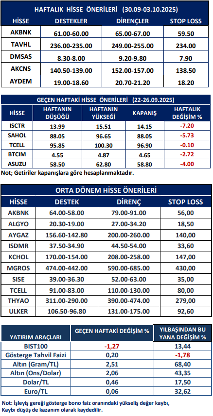 Piyasalarda ve özellikle Borsa İstanbul’da dalgalı seyir devam ediyor. Ekonomik gündem ile siyaset arasında denge kurmaya çalışılıyor. Enflasyondaki düşüş eğilimine paralel olarak TCMB’den gelen faiz indirimleri fiyatlanırken siyasi gelişmeler öne çıkıyor. Siyasetin izin verdiği ölçüde yön bulmaya çalışan bir piyasa görünümü hakim. Piyasalarda olumlu veya olumsuz fiyatlamalara genellikle esas teşkil edecek bir tema, bir çıpa olur. CHP Kurultayı ile İstanbul İl Kongresi’ne ilişkin mahkemeler ve YSK’dan haber akışları ekonomik gündemin önüne geçti. Bu yönde piyasa açısından iyimser algılanacak haberler geldiğinde TCMB faiz indirim süreci fiyatlama konusu olup olumlu bir süreç başlıyor. Tam piyasalar kendine bir istikamet belirleyip yön bulmuşken sürpriz bir mahkeme kararıyla bu defa olumsuz fiyatlama sürecine giriliyor. Bu sürecin BIST100 Endeksi’ne yansımaları ise destek noktalarında alımların geldiği, ancak direnç seviyelerinin geçilmekte zorlanıldığı bir piyasa görünümü şeklinde oluyor. BIST100 Endeksi’nin pahalı mı, yoksa ucuz mu olduğu, teknik verilerin neyi işaret ettiği gibi analizler bu aşamada çok belirleyici değil. Piyasa kendi gündemine dönebilse temel ve teknik analizlerin ağırlığı artacak. Henüz o noktada değiliz. Borsa en kötüyü gördü mü, göremedi mi aşamasını henüz geçemedik. Çünkü borsa aynı zamanda barometredir. Genel seyir hakkında bir ölçü verir. Bu noktada yatırım kararı vermek de zor. Borsaya yerli ve yabancı yatırımcının mesafeli duruşunun altında bu gerçeklik var. Yatırımcı bu ortamda güvenli limanlara yöneliyor. Faiz, döviz, altın ve son zamanlarda gümüş gibi yatırım araçları daha çok sorulur oldu. Yılbaşından bu yana yatırım araçları getirilerine bakıldığında; BIST100 Endeksi %14, gram/TL altın %68, ons altın %43, döviz sepeti %25 kazançlar sağlamış. Ağustos itibariyle enflasyonun %21.5 olduğunu dikkate alırsak olay zaten kendini gösteriyor. Borsanın primsiz olduğu muhakkak ancak ucuzluğu biraz tartışmaya açık bir konu. BIST100 Endeksi, TL bazlı grafiklerde zirveler test edilse de dolar ve TÜFE bazlı grafiklerde 10-15 yıl önceki seviyelerinde. Özellikle enflasyon muhasebesi konusu bilanço kârlarını törpülediği için ucuzluk konusu göreceli bir durum. Borsada güçlü trendler güçlü beklentiler ile olur. Piyasalar ekonomik gündeme dönebilirse bu beklentileri oluşturabilir. TCMB faiz kararlarıyla ilintili olduğu için piyasalar son dönemde enflasyon verilerine daha duyarlı hale geldi. 3 Ekim’de Eylül ayına ait enflasyon verileri açıklanacak. TCMB’nin son toplantıya ait özetindeki “Eylül’de enflasyon ana eğilimi bir miktar yükselebilir” ifadesi bu açıdan kayda değer. Piyasa beklentisi (TÜFE) Eylül ayı için hafif yükselişle %2.50 gibi oluşmuş durumda. Ağustos enflasyonu %2.04 olarak açıklanmıştı. Beklentilerde bir miktar yükseliş görülse de %2 seviyelerinde gelecek bir enflasyon oranı piyasaları çok rahatsız etmez ve TCMB faiz kararlarında radikal bir değişikliğe neden olmaz. TCMB tarafından açıklanan yabancı işlemleri ve parasal istatistikler yakından izleniyor. 19 Eylül ile biten haftada; Yabancı yatırımcılar hisse senetlerinde 407 milyon dolar, tahvil bonoda ise 178 milyon dolarlık alım yaptılar. Hisse senetlerindeki alım son ayların en yüksek rakamlarından biri. 15 Eylül CHP Kurultayı’nın mahkeme tarafından ertelenmesi kararı sonrası borsada sert yükseliş görülmüştü. Bu açıdan yabancıların hisse senetleri ve tahvilde alım tarafında olması olağan bir sonuç. Ancak siyasi haberlerdeki yön değişikliğine paralel olarak yabancı işlemlerinin de yön değiştirmesi beklenen bir gelişme olacak. Aynı hafta TCMB brüt rezervleri ve yurtiçi yerleşiklerin döviz mevduatında yükseliş devam etti. TCMB brüt rezervleri 992 milyon dolar yükselişle 178 milyar dolara, yurtiçi yerleşiklerin döviz mevduatı ise 2.1 milyar dolar artışla 203 milyar dolara ulaşmış durumda. Dövize ilgi devam ediyor. Dövize olan ilgiyi sadece banka mevduatı üzerinden takip etmek eksik olabilir. Aynı zamanda döviz fonlarını da takip etmek yararlı olacak.