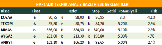 Haftalık Teknik Analiz Bazlı Hisse Beklentileri