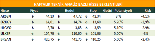 Haftalık Teknik Analiz Bazlı Hisse Beklentileri