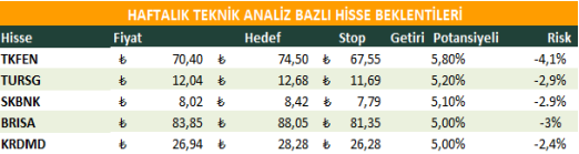 Haftalık Teknik Analiz Bazlı Hisse Beklentileri