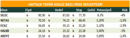 Haftalık Teknik Analiz Bazlı Hisse Beklentileri