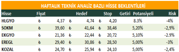 Haftalık Teknik Analiz Bazlı Hisse Beklentileri