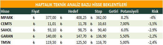 Haftalık Teknik Analiz Bazlı Hisse Beklentileri