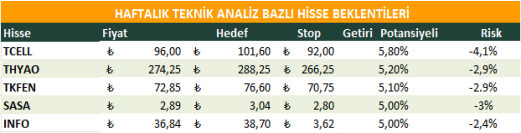 Haftalık Teknik Analiz Bazlı Hisse Beklentileri