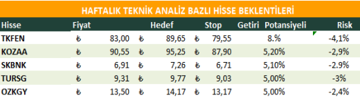 Haftalık Teknik Analiz Bazlı Hisse Beklentileri