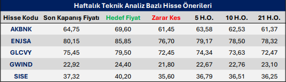 Haftalık Teknik Analiz Bazlı Hisse Önerileri