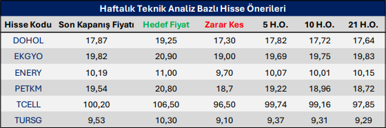 Haftalık Teknik Analiz Bazlı Hisse Önerileri