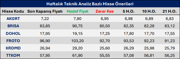 Haftalık Teknik Analiz Bazlı Hisse Önerileri