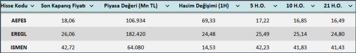 Yurt İçi Haftalık Hisse Önerileri
