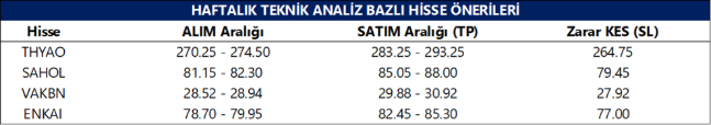 Kaynak: Tacirler Yatırım Haftalık Teknik Analiz Bülteni