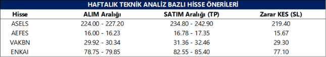 Kaynak: Tacirler Yatırım Haftalık Teknik Analiz Bülteni