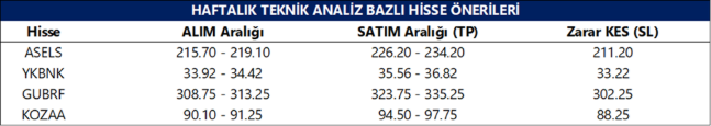 Haftalık Teknik Bazlı Hisse Önerileri