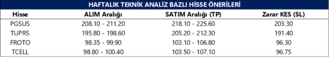 Kaynak: Tacirler Yatırım Haftalık Teknik Analiz Bülteni