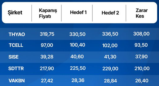 THYAO, TCELL, SISE, SDTTR, VAKBN