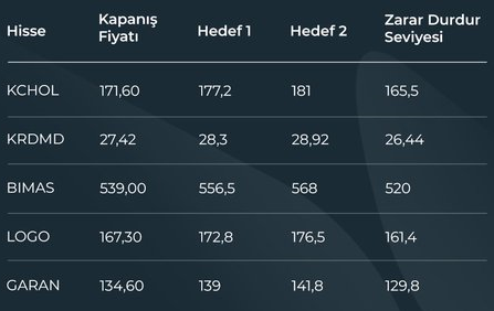 Bu hafta takibimizde olan 5 hisse önerisi aşağıda yer almaktadır: