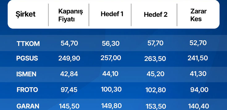 TTKOM, PGSUS, ISMEN, FROTO, GARAN