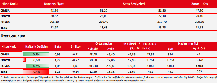 Haftalık Hisse Teknik Öneri Listesi