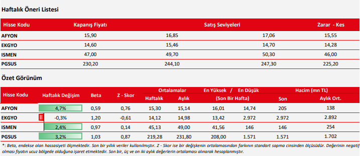 Kaynak: Ziraat Yatırım Haftalık Teknik Hisse Önerileri