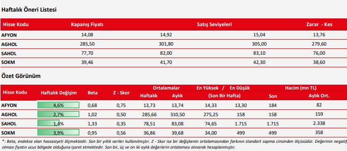 Kaynak: Ziraat Yatırım Haftalık Teknik Hisse Önerileri