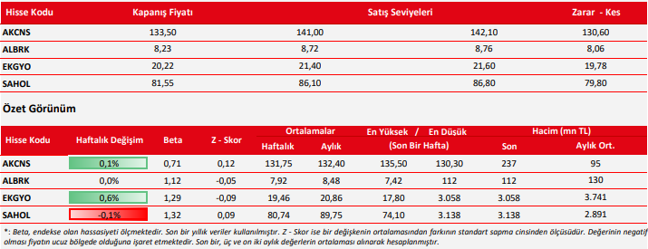 Kaynak: Ziraat Yatırım Haftalık Teknik Hisse Önerileri
