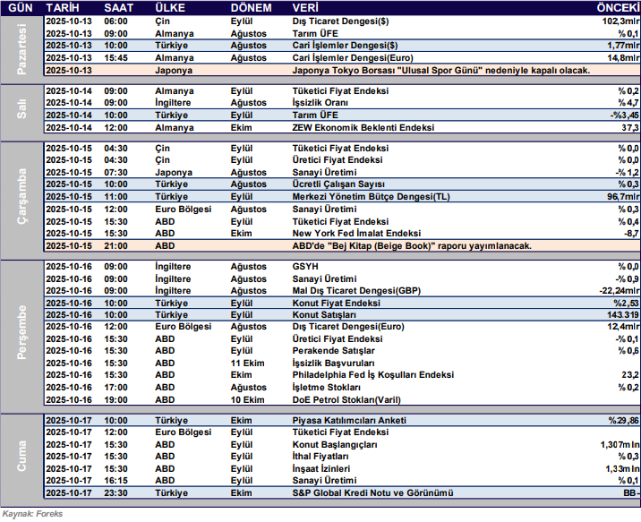 verileri takip edilecek. Çarşamba günü ABD’de “Bej Kitap (Beige Book)” raporu yayımlanacak. Pazartesi günü Japonya Tokyo Borsası “Ulusal Spor Günü” nedeniyle kapalı olacak.