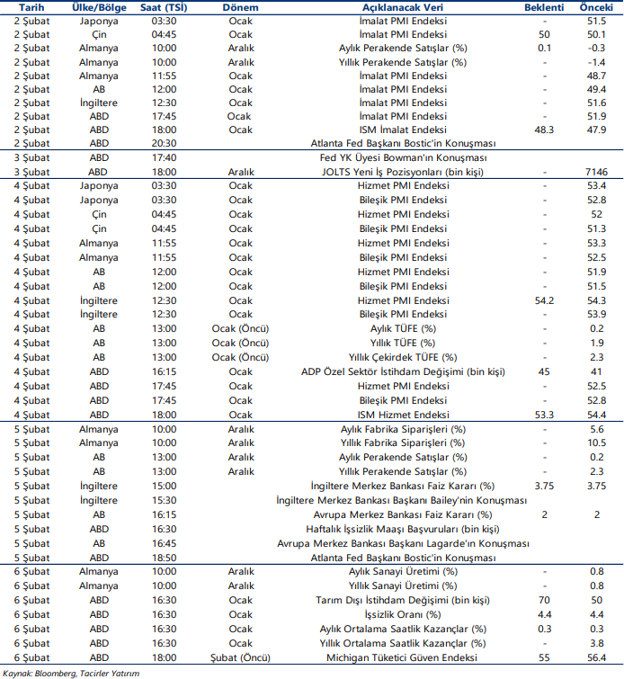 Ekonomik Veri Takvimi 2 – 6 Şubat