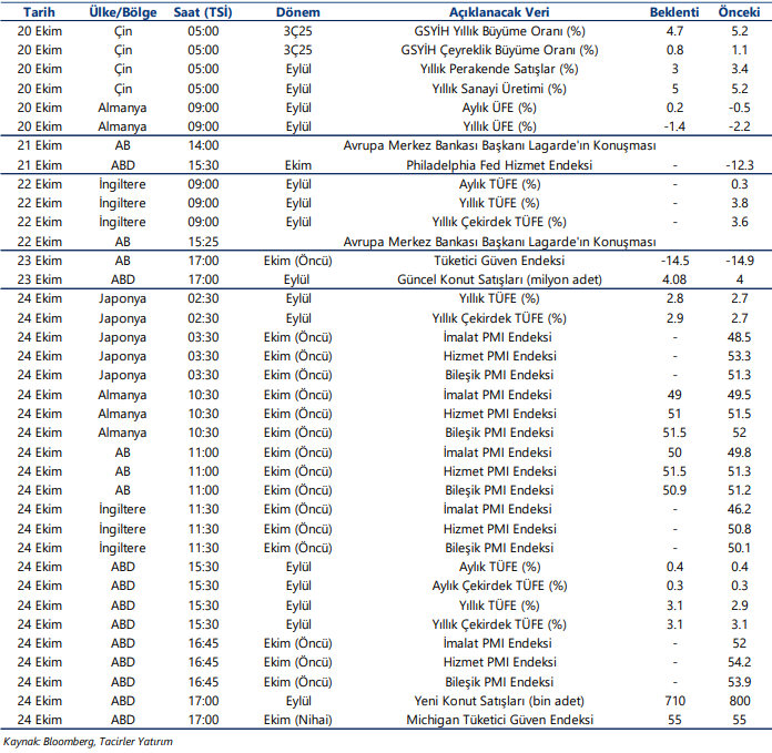 Kaynak: Tacirler Yatırım Haftalık Piyasa Takvimi