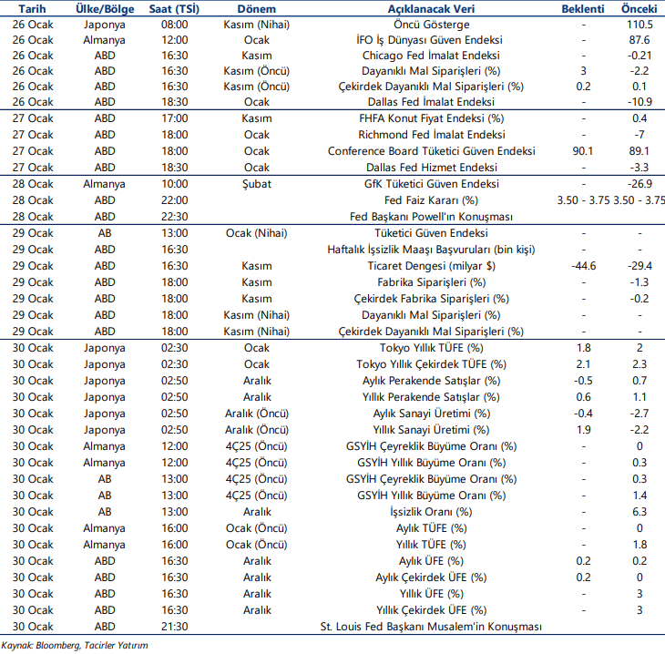 Kaynak: Tacirler Yatırım Haftalık Piyasa Takvimi